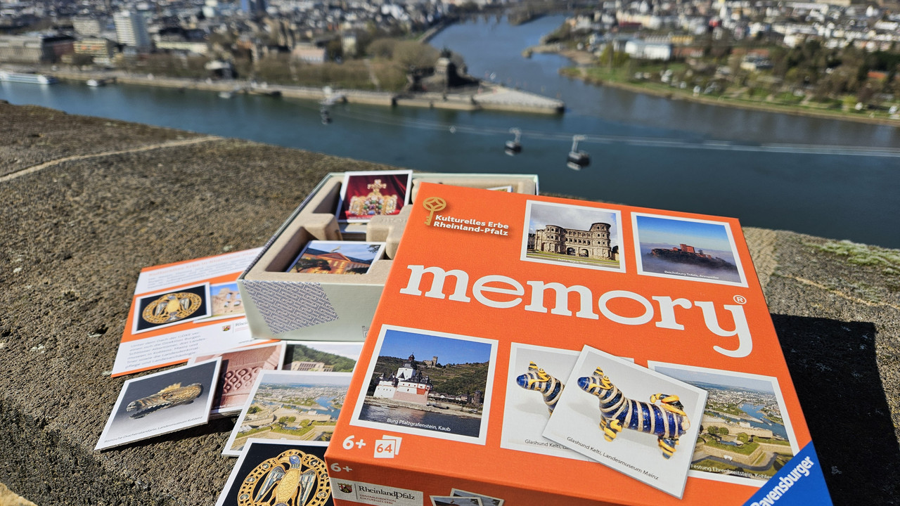 Ob als Geschenk, Souvenir oder spielerische Ergänzung zum Museumsbesuch – dieses Memory ist ein ideales Produkt für alle, die Rheinland‑Pfalz und seine kulturellen Schätze lieben. Erhältlich ist das Original Ravensburger Memory Spiel für 16,95 € in den Museumsshops der Landesmuseen oder auch hier im Online-Shop!